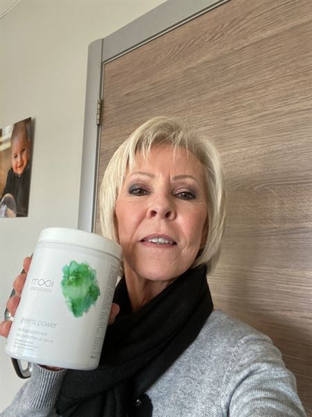 Sedert ik de green powder neem ben ik de ganse dag fit.