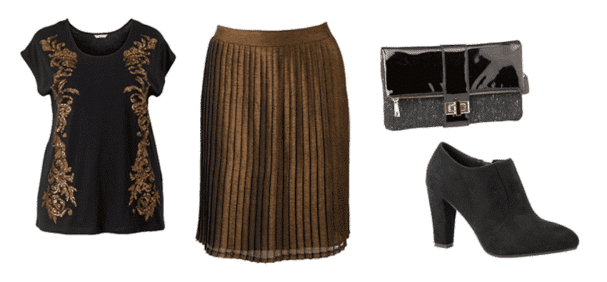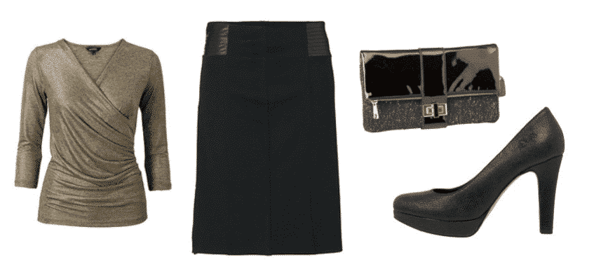 Twee toppers hier zijn de kokerrok en de plooirok. Heel makkelijk te combineren – Kies voor een mooie donkere kokerrok en doe daar een prachtige goud-kleurige top bij.