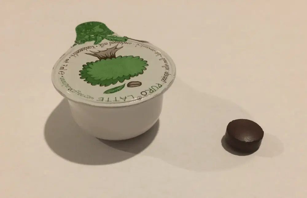 Hier is een foto van een tabletje naast een gewoon melkcupje:
